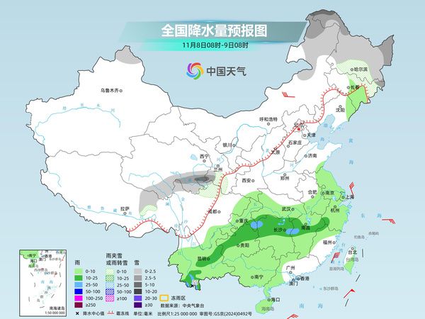 中国天气网讯 预计周末两天(11月8日至9日)冷空气将继续向东、向南移动。东北多地仍将有大雪,江南多地降雨将加剧。市民出行时应小心谨慎、缓慢行驶,并注意因能见度降低、道路湿滑对交通造成的负面影响。冷空气和雨水的共同影响,江南多地将启动降温模式,湿冷感进一步恶化。要及时添加衣服,预防感冒。东北地区的许多地方继续下雪,强度很大。长江以南部分地区降雨偏大。昨天,无雨雪天气西北航空减弱并几乎停止。随着冷空气东移,雨雪主要影响范围向东扩大。内蒙古东部和东北部多地已出现降雪。青海省东北部、甘肃省南部、河北省北部、内蒙古自治区东部、东北地区西部等地有小到中雪或雨夹雪。内蒙古自治区赤峰市局部出现大雪。周末两天,这股冷锋将继续自东向南移动,东北地区多地仍有降雪。同时,受冷暖空气影响,雅江以南部分地区降雨量预计将增加。中央气象台预计,今日内蒙古东北部、华北和东部、青海省南部等地部分地区有小到中雪或雨夹雪。的部分包括西北部黑龙江省、东南部青海省在内的地区将出现大雪,预计积雪深度将达到2至5厘米。江南北部、贵州北部和西部、云南南部和东北部等地部分地区有中到大雨,其中云南西南部局地大暴雨。明天,内蒙古东北部、黑龙江省北部和东部、青海省东部部分地区有小雪或雨夹雪。江淮西部、江汉南部、江南大部、西南地区东部和南部、广西西部、海南岛、台湾岛等地的部分地区有小到中雨。云南西南部部分地区将有大到暴雨。后天将在新疆北部和青海东部地区。部分地区将有小雪和雨夹雪。与此同时,新疆阿尔泰山地区将有中到大雪。重莱台湾岛部分地区气温下降。其中,台湾岛东北部有大雨或特大雨。今天至明天,东北多地预计有大雪,长江以南降雨量预计有所增加。要避免因能见度降低、道路湿滑而对交通造成负面影响。后天开始,冷暖空气汇合降水将逐渐减弱,但随着台风“凤凰”的临近,预计东南沿海风雨将逐渐加强,需谨慎。江南多地已开启降温模式。下周将有两波冷空气相继出现。昨天,受冷空气影响,北方地区天气明显变冷,东北地区多地创下下半年最低气温。今天,作为冷空气东移、南移,中部降温区南移。周末两天,受冷空气和雨水影响,江南多地最高气温将降至20度以下。然而,随着冷空气更快地进入,该地区下周初可能会进一步变暖。各大城市中,长沙昨天最高气温为23摄氏度,今天将降至16摄氏度。下雨时,寒冷和潮湿的感觉会增加。即使此次冷空气影响结束,预计下周冷空气仍将活跃,导致多地气温出现较大波动。 11日至13日,偏西吹弱冷空气。中东部地区也将受到影响,预计15日左右将有强冷空气进入。建议市民注意一段时间内气温变化,及时增减衣物,谨防感冒。